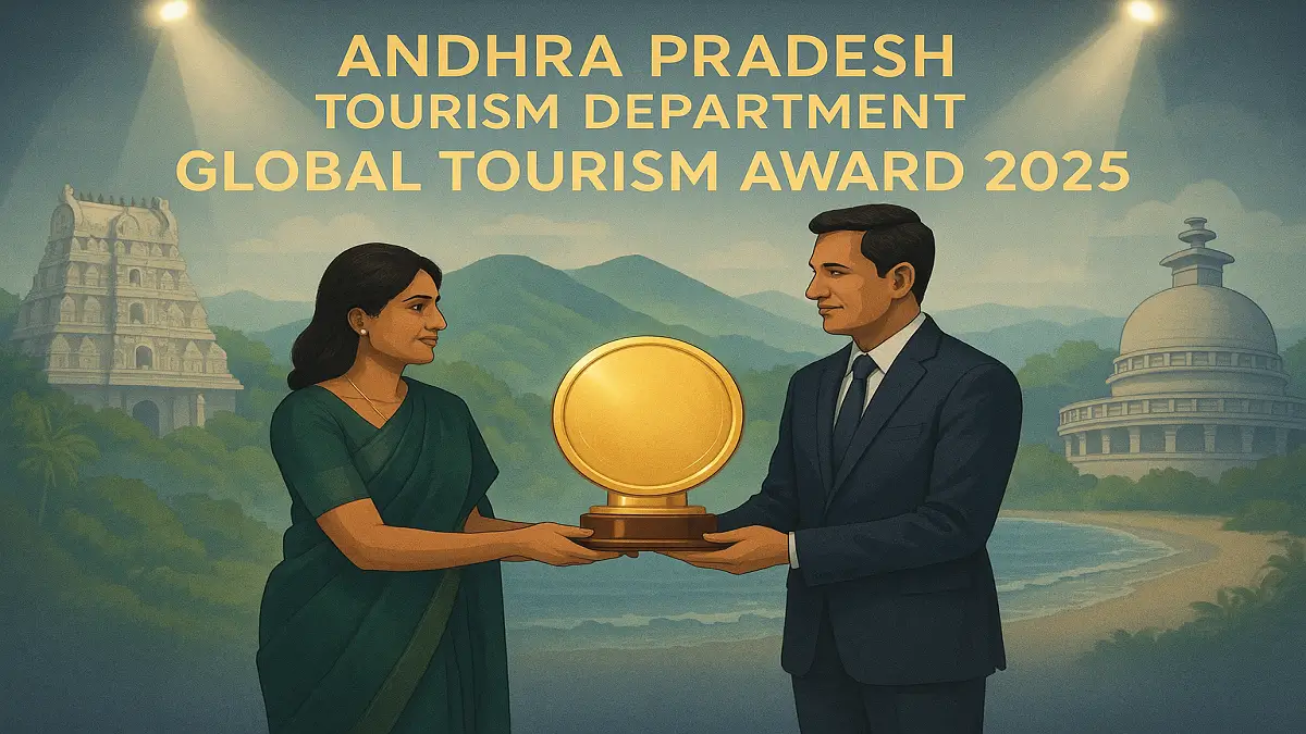 The Andhra Pradesh Tourism Department has won the prestigious Global Tourism Award 2025, recognizing its outstanding initiatives in positioning Andhra Pradesh as one of India’s most promising tourist destinations. The award was received by tourism consultant Nishitha Goyal on behalf of the department at a ceremony held in New Delhi.