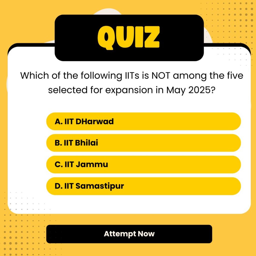 - Target IITs: IIT Tirupati (Andhra Pradesh), IIT Palakkad (Kerala), IIT Bhilai (Chhattisgarh), IIT Jammu (J&K), and IIT Dharwad (Karnataka).