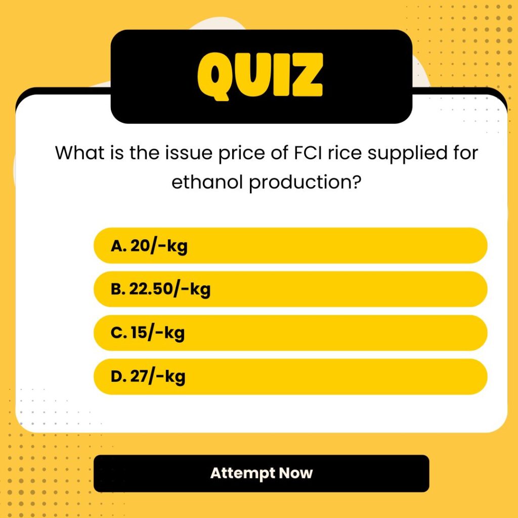 | Why in the news? | Centre Allocates 2.8 Million Tonnes More FCI Rice for Ethanol |