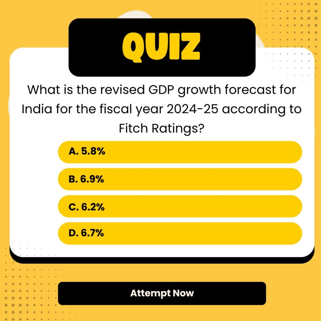 - Fitch Ratings has revised India’s GDP growth estimate for both the 2024-25 and 2025-26 fiscal years, cutting it by 10 basis points to 6.4%.