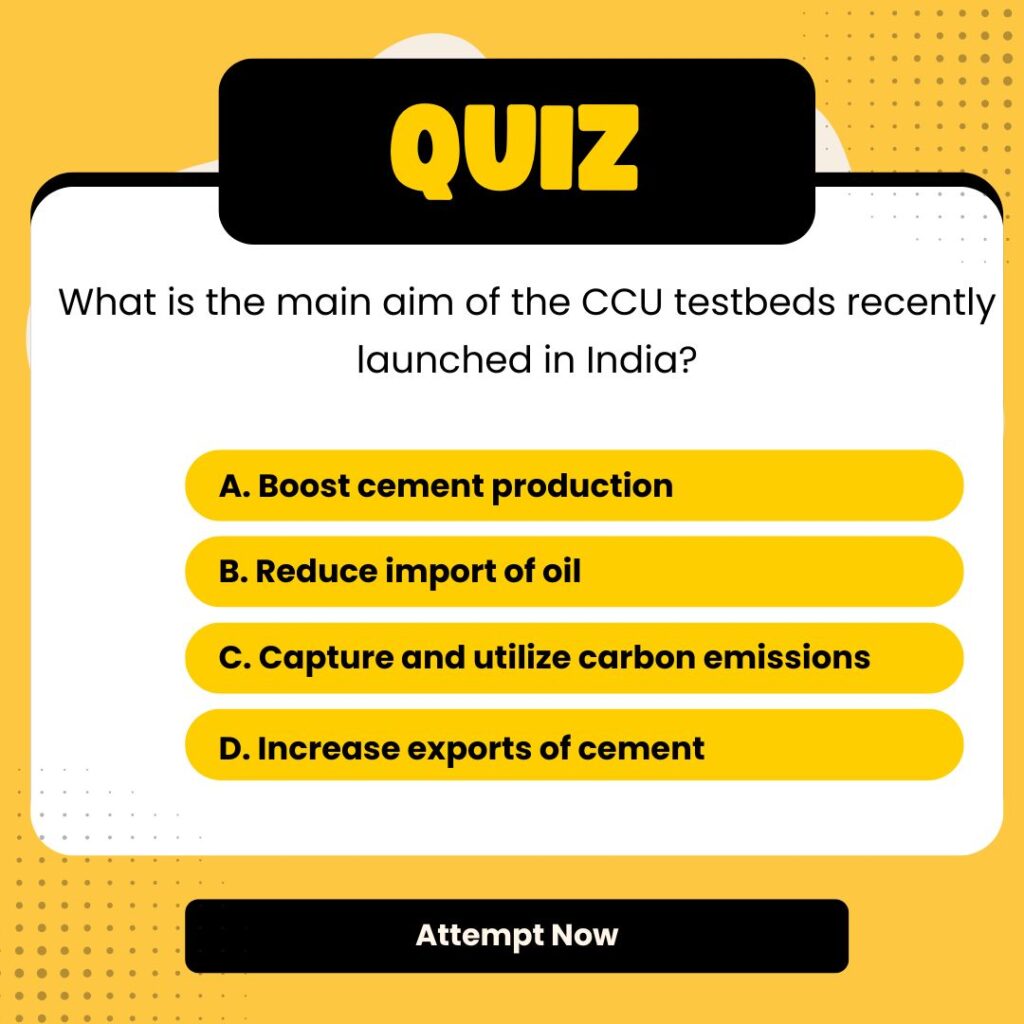 | Why in the news? | India Launches First Cluster of CCU Testbeds to Decarbonize Cement Sector |