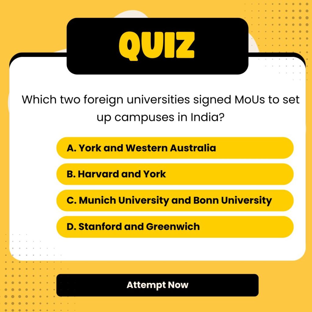 - NEP 2020: National Education Policy encourages collaboration with foreign universities.