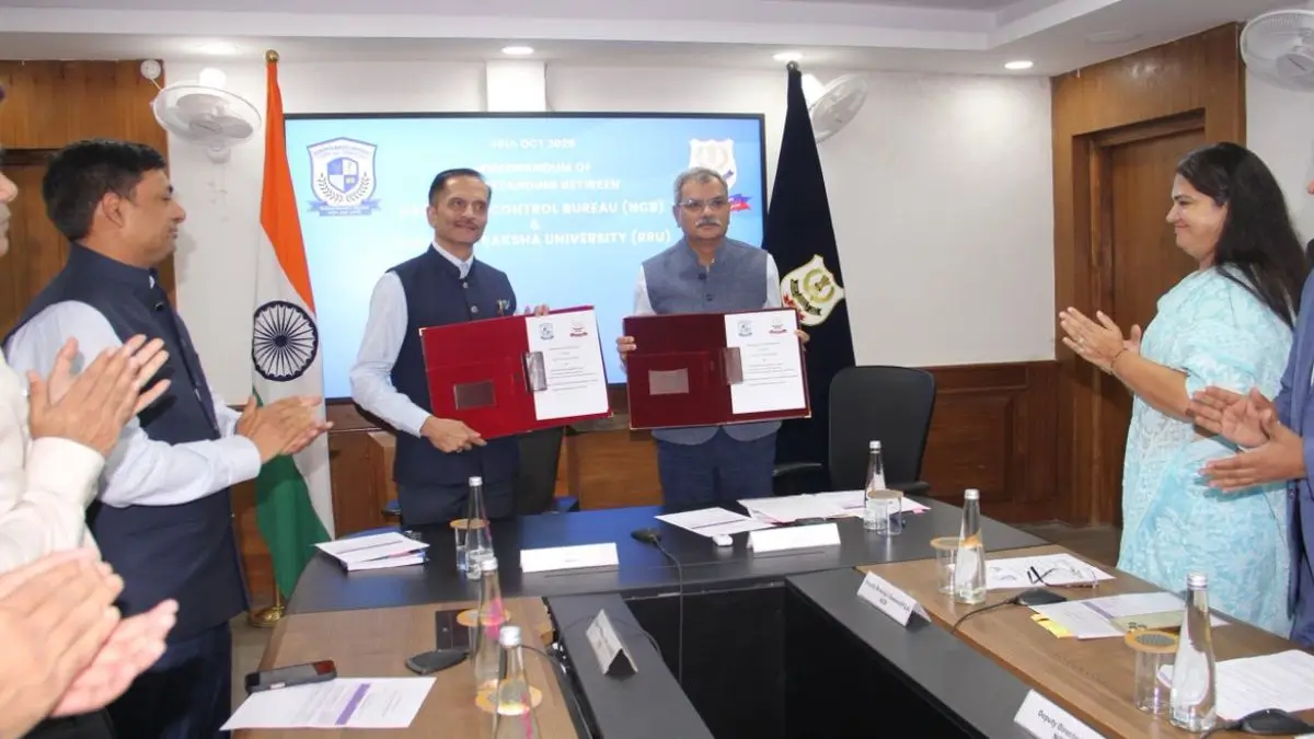 In a major step toward enhancing India’s fight against narcotics and cyber-enabled drug crimes, the Narcotics Control Bureau (NCB) and the Rashtriya Raksha University (RRU) have signed a Memorandum of Understanding (MoU) to collaborate in research, training, and capacity building. The agreement, signed in New Delhi, focuses on integrating academic research, technological innovation, and field-level enforcement to combat the growing threat of drug trafficking through digital and cyber platforms.