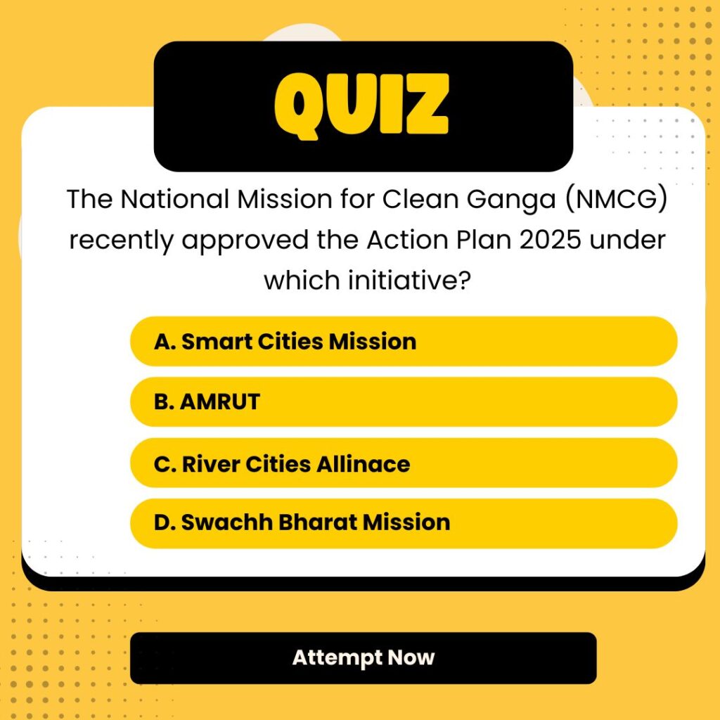 | Why in the news? | NMCG Approves Action Plan 2025 for Urban River Rejuvenation under River Cities Alliance |