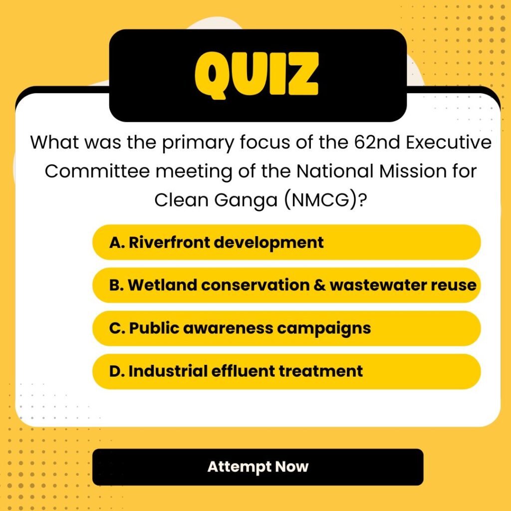 | Why in the news? | “NMCG Approves Key Projects for Ganga Rejuvenation in 62nd Executive Committee Meeting” |