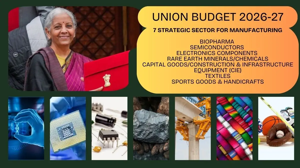 The Union Budget 2026-27 marks a decisive shift towards making India a global manufacturing powerhouse. Presented in Parliament, the Budget places strong emphasis on scaling up manufacturing across 7 strategic and frontier sectors. From biopharma and semiconductors to textiles, chemicals and sports goods, the government has announced large financial outlays and new schemes. These proposals aim to boost self-reliance, employment, exports and supply chain resilience, making this Budget extremely important for exams and economic understanding.