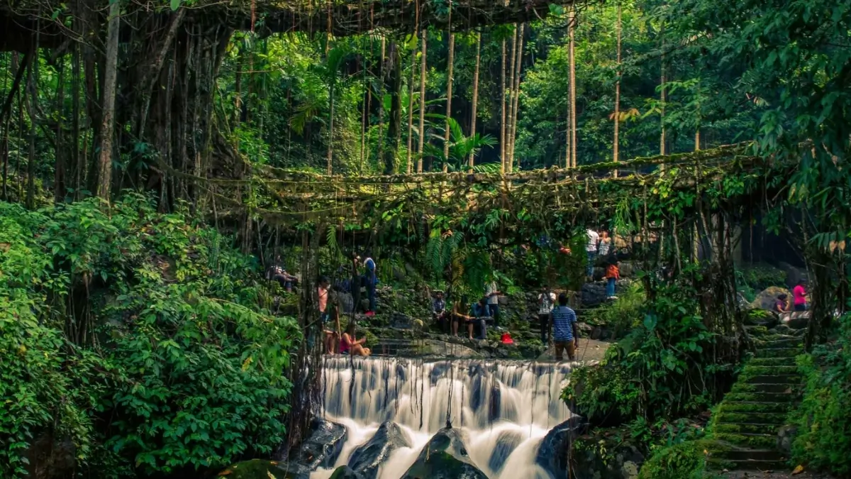 - Popular sites include Nongriat village, home to the famous double-decker root bridge. Surrounded by dense forests, waterfalls, and hills, the region receives heavy rainfall, making these natural bridges essential for connectivity and daily life in remote villages.