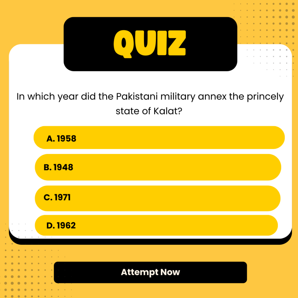 When Pakistan was created in 1947, the princely state of Kalat (which formed the core of modern Balochistan) was technically independent. Its ruler, the Khan of Kalat, initially refused to join Pakistan. However, in 1948, under military pressure, Kalat was annexed by Pakistan. This event is widely seen by Baloch nationalists as the beginning of forced integration and subjugation.
